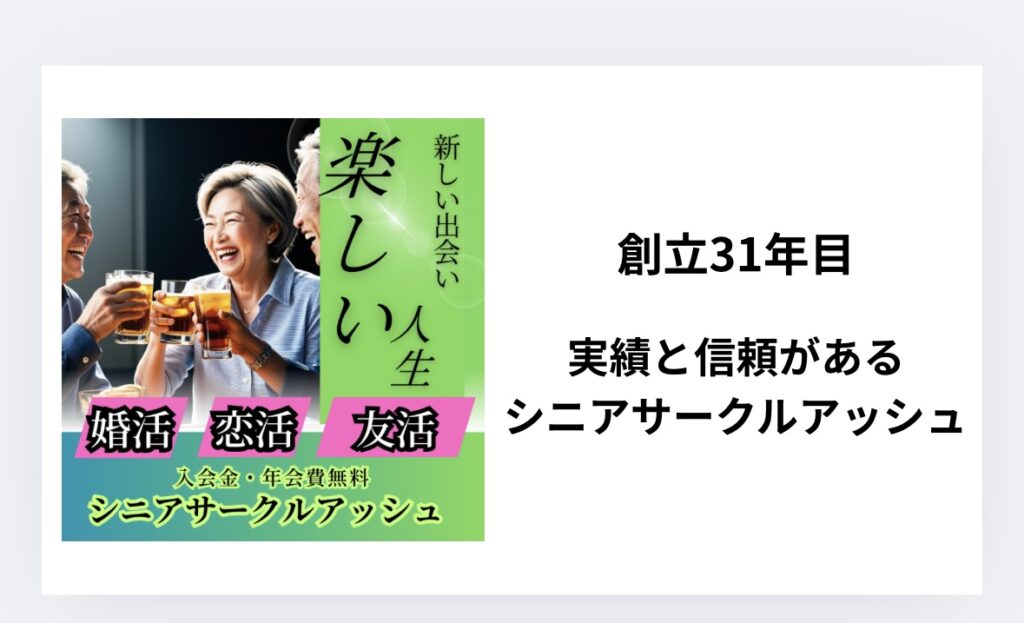 シニアサークルアッシュは、設立31年目を迎える全国規模のサークルです。