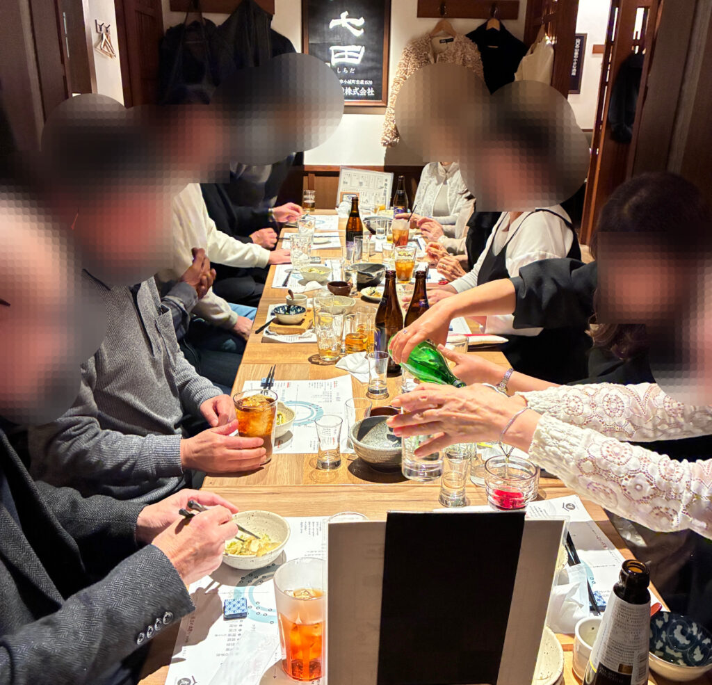 まずは皆さまで「乾杯〜!」の発声。最初は少し緊張されていた方も、個室の落ち着いた雰囲気と、運ばれてくる色鮮やかな和食を前に、自然と表情が和らいでいきます。