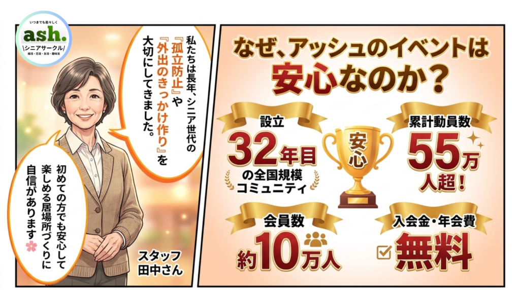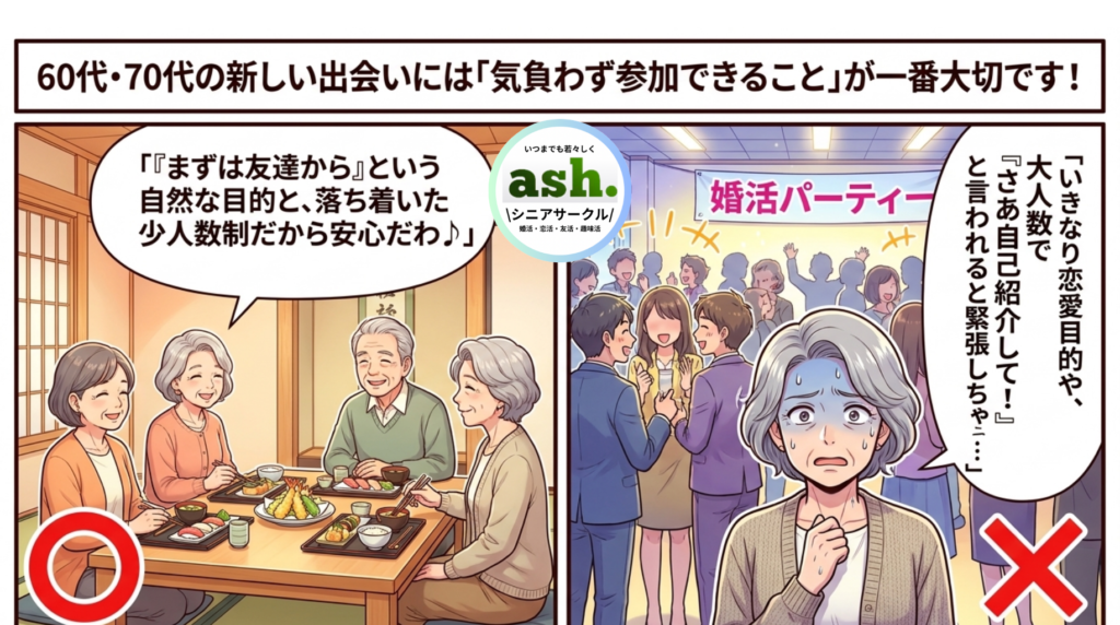 シニアサークルアッシュは、単なる出会い系サイトやマッチングアプリとは違います。