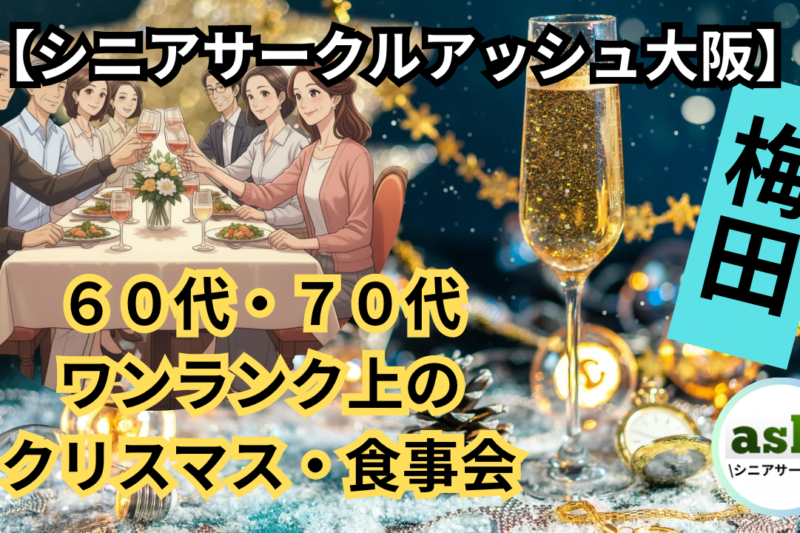 【60代・70代の出会い・友達作り】大阪梅田で開催されたシニアサークルアッシュの「特別クリスマス食事会」の様子を...